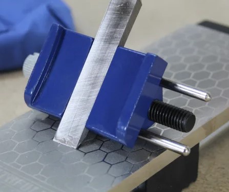 Use the inner jaws for chisels, a blade projection of 30mm will give a 30 degree angle and 40mm will result in a 25 degree angle.