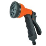 The Faithfull 8 Pattern Adjustable Spray Gun features a plastic body, comfort-grip handle, fitted with a 12.7mm (1/2in) male hose connector. The trigger features an auto-lock to allow hands-free use. It delivers eight patterns: cone, centre, mist, shower, flat, angle, full and soaker, that can be selected by turning the front faceplate.