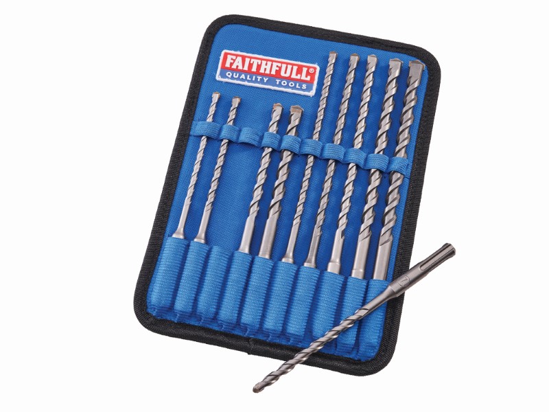 This New 10 Piece SDS Drill Bit Set, sizes 5.5 to 12mm, by Faithfull, is an excellent deal saving and comes in a neat fabric storage wallet.