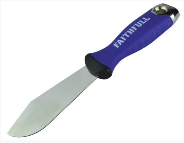 The Faithfull Putty Knife features a stainless steel blade for long-life and resistance to corrosion. The soft grip handle provides greater comfort. It is fitted with a metal end cap that can be used to knock back protruding nails.