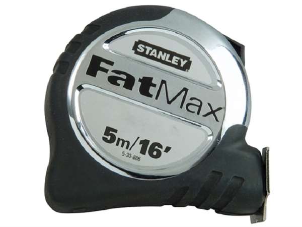 The Stanley Tools FatMax Tape Measure has a huge standout from their 32mm wide blade. The Mylar coating makes the blade 10 times more resistant to abrasion and unique blade armor coating protects the first 15cm, where the tape suffers most wear and tear. With heavy-duty, slip-resistant casing with easy-grip rubber moulding and 3-rivet tru-zero hook gives extra strength and prevents breakage on rewind, also the hook moves in or out to compensate for internal and external measurements.