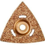 A triangular carbide rasp which fits the old style Multimaster. For rough sanding of filler, tile adhesives, concrete, stone and wood. For use with or without dust extractor.