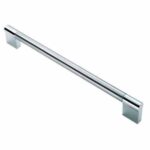 Bar Handle with Keyhole Pattern Posts Satin Nickel/Polished Chrome finish by Fingertip Design. Manufactured by Carlisle Brass