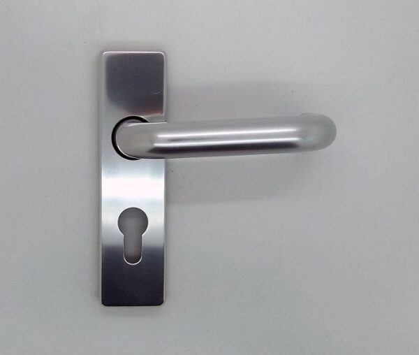 Euro lever set. 154x41mm backplate. 51mm Centres. Push on cover. Satin anodised aluminium.