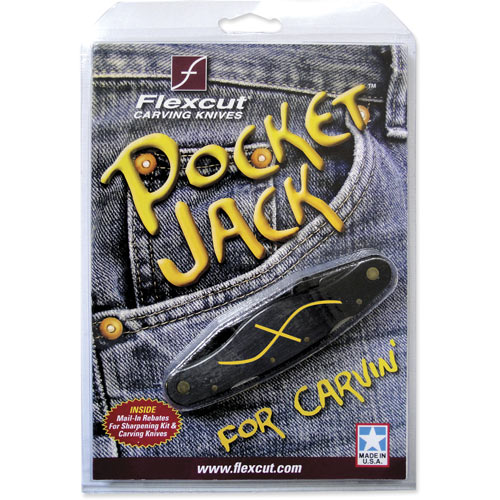 A complete carving kit in your pocket. An excellent companion for carving on the move. Just over 85g. Includes a Detail Knife, Straight Gouge, Scorp and V- Scorp. A new addition to the Flexcut range, the Pocket Jack really is an excellent companion for carving on the move. The Pocket Jack includes 4 of the most frequently used blades from its bigger brother the Carvin Jack. Light in weight and very compact, it includes a Detail Knife, Straight Gouge, Scorp and V- Scorp. It would make a great gift too.