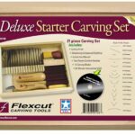 SK108 Starter Carving Set is our most complete carving set all in one box. It has everything you need, whether it be for mallet, palm, or knife carving. It contains the SK100 ABS Quick Connect Handle, KN12 Cutting Knife, SK103 Quick Connect Power Handle, Flexcut SlipStrop and Compound, 16 Carving Tools, Wooden Storage Box and DVD version of Relief Carving in A Different Light.The added SlipStrop Gold Compound and owners manual is the key to keeping them all sharp. There is even a place to store an optional Universal Adapter for using these tools with your reciprocating power carver.The 16 gouge profiles featured in this kit are not included in any other SK carving set.