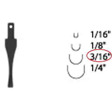 The Flexcut SK chisels will fit into the Flexcut handle (810478) for carving by hand or, by using the 810480 adaptor, into the Bosch Power Carver. Sweep 11 x 3/16in (5mm).