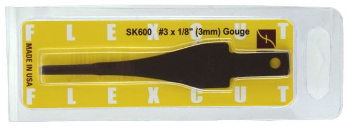 The Flexcut SK chisels will fit into the Flexcut handle (810478) for carving by hand or, by using the 810480 adaptor, into the Bosch Power Carver. Sweep 3 x 1/8in (3mm)