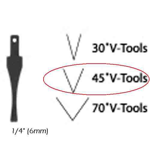 The Flexcut SK chisels will fit into the Flexcut handle (810478) for carving by hand or, by using the 810480 adaptor, into the Bosch Power Carver. 70deg Vee x 1/4in (6mm)