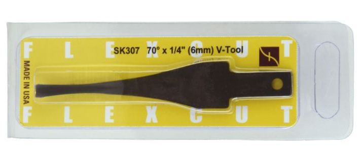 The Flexcut SK chisels will fit into the Flexcut handle (810478) for carving by hand or, by using the 810480 adaptor, into the Bosch Power Carver. 70deg Vee x 1/4in (6mm)