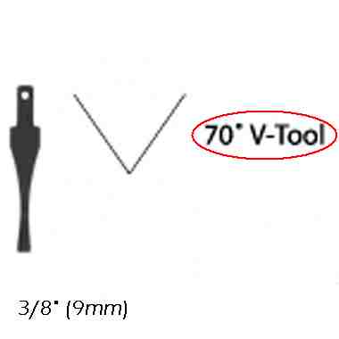 The Flexcut SK chisels will fit into the Flexcut handle (810478) for carving by hand or, by using the 810480 adaptor, into the Bosch Power Carver. 70deg x 3/8in (9mm)