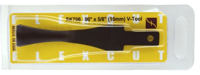 The Flexcut SK chisels will fit into the Flexcut handle (810478) for carving by hand or, by using the 810480 adaptor, into the Bosch Power Carver. 90deg x 5/8in (16mm)