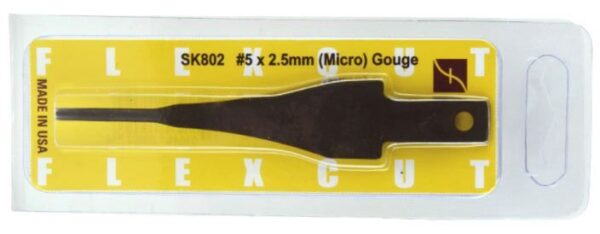 The Flexcut SK chisels will fit into the Flexcut handle (810478) for carving by hand or, by using the 810480 adaptor, into the Bosch Power Carver.Sweep 5 x 2.5mm (micro)