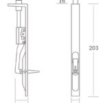 Lever action flush bolt, 203x19mm. Shoot size: 11 diameter. Length of throw: 16mm. High quality coil spring. Smooth easy action. parallel line of movement. Imitation Bronze Metal Antique finish.