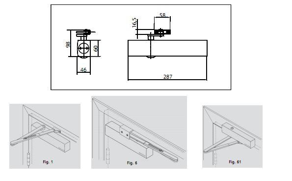 Adjustable Closing Force (size 1-6). Fig 1/61/66. Closer In Only One Construction Size.