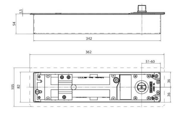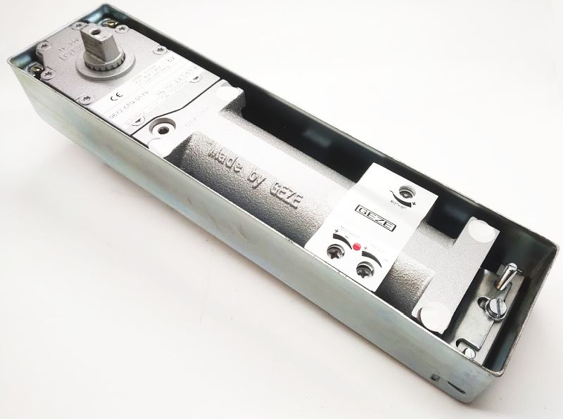 +GEZE TS 550 NV FP DOUBLE ACTION FLOOR SPRING MECHANISM ONLY. ADJUSTABLE SIZE 3-6, ADJUSTABLE CLOSING SPEED (FROM 175°), FIXED BACKCHECK, DELAYED ACTION (FROM 180-80° AND 80-0°) AND ADJUSTABLE LATCH ACTION (15-0°). SUITABLE FOR INTERNAL OR EXTERNAL DOORS UP TO 300kgs. SUITABLE FOR FIRE DOORS. WITH CEMENT BOX BUT WITHOUT COVERPLATE, STRAP, PIVOT OR TOP CENTRE. CAN BE USED IN WET ROOMS WITH SEALING COMPOUND PACK.