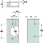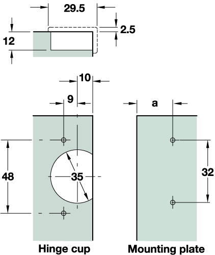 Grass Pie-cut 155deg corner hinge, Diam: 35 mm cup, screw fixing, click on arms