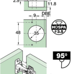 Grass standard 95deg hinge, Diam: 35 mm cup, screw fixing, slide on arms, sprung