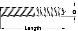 Wood to metal dowel, M8. Diam: M8 x 50 mm dowel