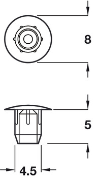 5 mm diameter cover caps. Press fit, for 5 x min. 4.3 mm holes. Ribbed or lightly tapered body ensures secure grip when installed. Plastic, anthracite grey (RAL 7016)