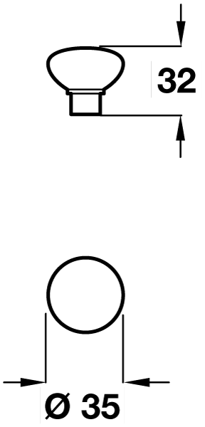 SMOOTH Knob, Diam: 35 mm. Diameter: Diam: 35 mm