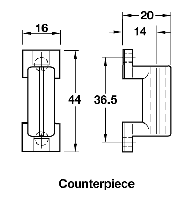 Nylon counterpiece for spring catch. For butt or flush mounted panels and plinths. Screw fixing