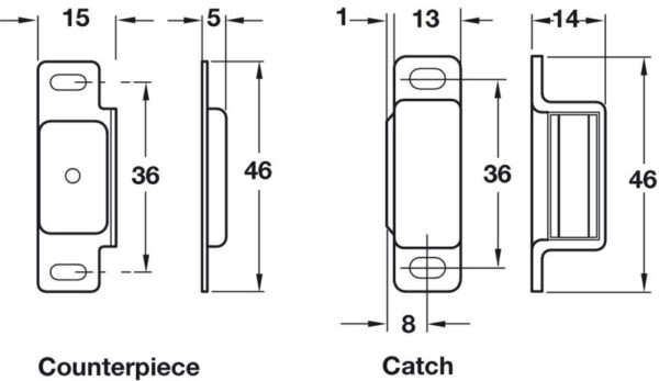 Home » HARDWARE » CABINET FITTINGS » CATCHES » HAFELE 246.16.100 Magnetic Catch 46x15mm 6kg Pull EB (EACH)