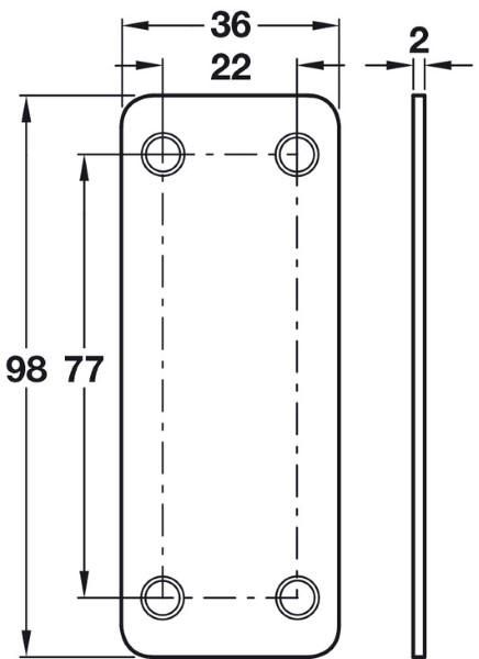HAFELE 260.21.955 Flat Plate 98x36x2mm CSK Holes ZP (EACH)