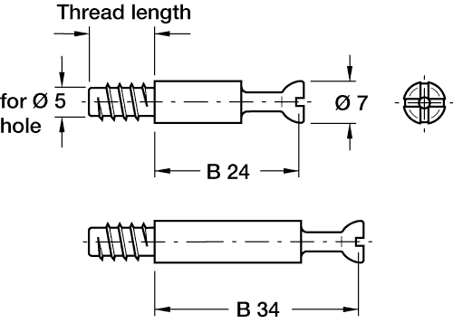 Thread length: 15 mm, drilling distance: 24 mm, bright finish
