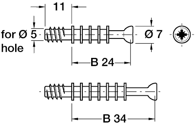 Minifix 15 connecting bolt, for Diam: 5 mm holes