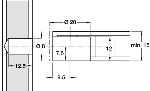 Bolt pre-mounted, for installation in Diam: 8 mm holes