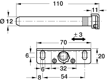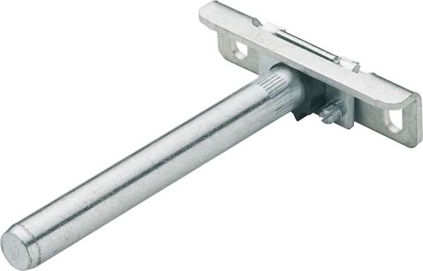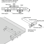 Supporting pin with knurled section is installed in a Diam: 12 mm hole in the shelf, the pin may be exposed or concealed depending on the thickness of the shelf