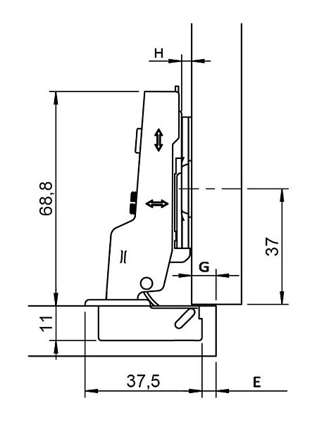 Adjustment facility: Side adjustment 3mm. Height adjustment 2mm (via mounting plate). Depth adjustment + 2 mm