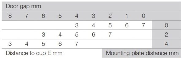 Adjustment facility: Side adjustment 3mm. Height adjustment 2mm (via mounting plate). Depth adjustment + 2 mm