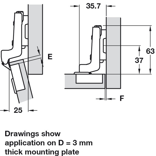 Concealed Cup Hinge, 110deg Standard, Inset Mounting, with Standard Depth Adjustment, Häfele Screw fixing cup, click on arm, 45/9.5