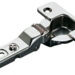 Flat concealed hinge, full overlay specifically for refrigerator door applications with automatic closing spring.