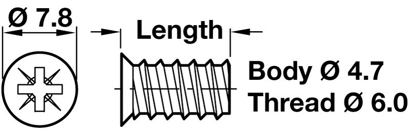 Varianta chipboard screw countersunk head. For 5.0 mm diameter hole. Thread diameter 6.0mm. Overall length 13.5mm. PZ2