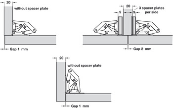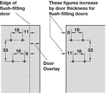 For minimum door thickness 16 mm, for side panels 16 – 22 mm thick
