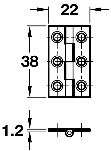 38 x 22 x 1.2mm.