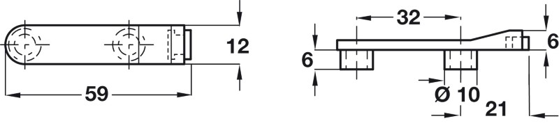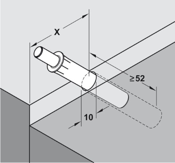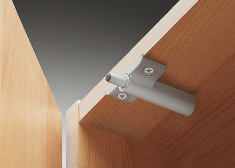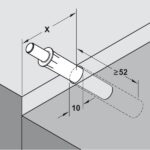 Strong: cabinet top panel, closer to pivot point. Choice of correct version (thickness) and exact installation position depends on door width, door weight and the hinges that are used. Trial mounting is recommended.