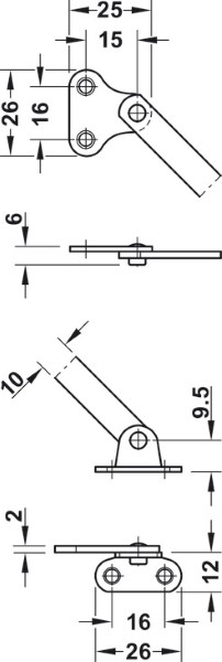 Flap Stay, for Wooden Flaps, with Slotted Guide in Joint