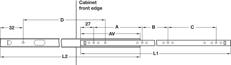 Drawer runners, single extension, 10 kg capacity, groove mounted