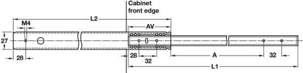 Drawer runners, single extension, 12 kg capacity, groove mounted