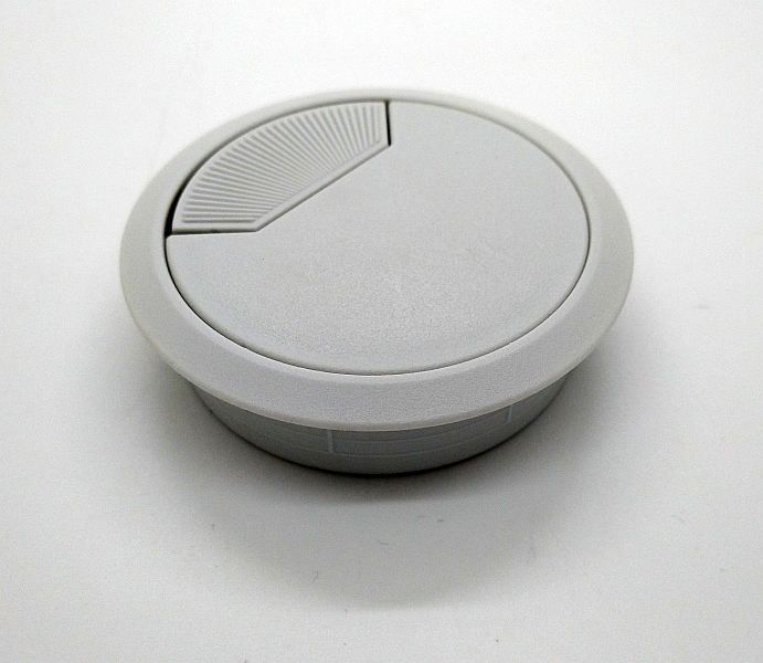 Plastic outlet, sleeve and cover plate, 80 mm, light grey colour.