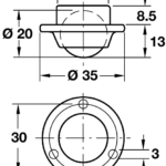 Ball castor, plate fixing, Diam: 20mm