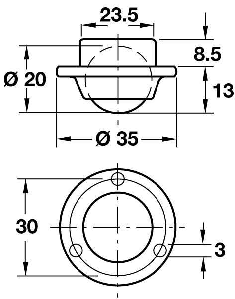 Ball castor, plate fixing, Diam: 20mm