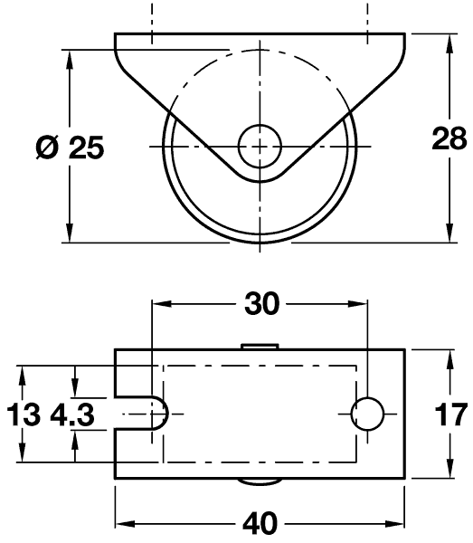 Fixed castor, 15-50 kg, Diam: 15-45 mm