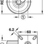 Chromatized zinc-plated sheet steel housing with black polyamide wheel with grey solid rubber tyre
