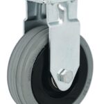 Chromatized zinc-plated sheet steel housing with black polyamide wheel with grey solid rubber tyre