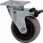 Chromatized zinc-plated sheet steel housing with black polyamide wheel with grey solid rubber tyre
